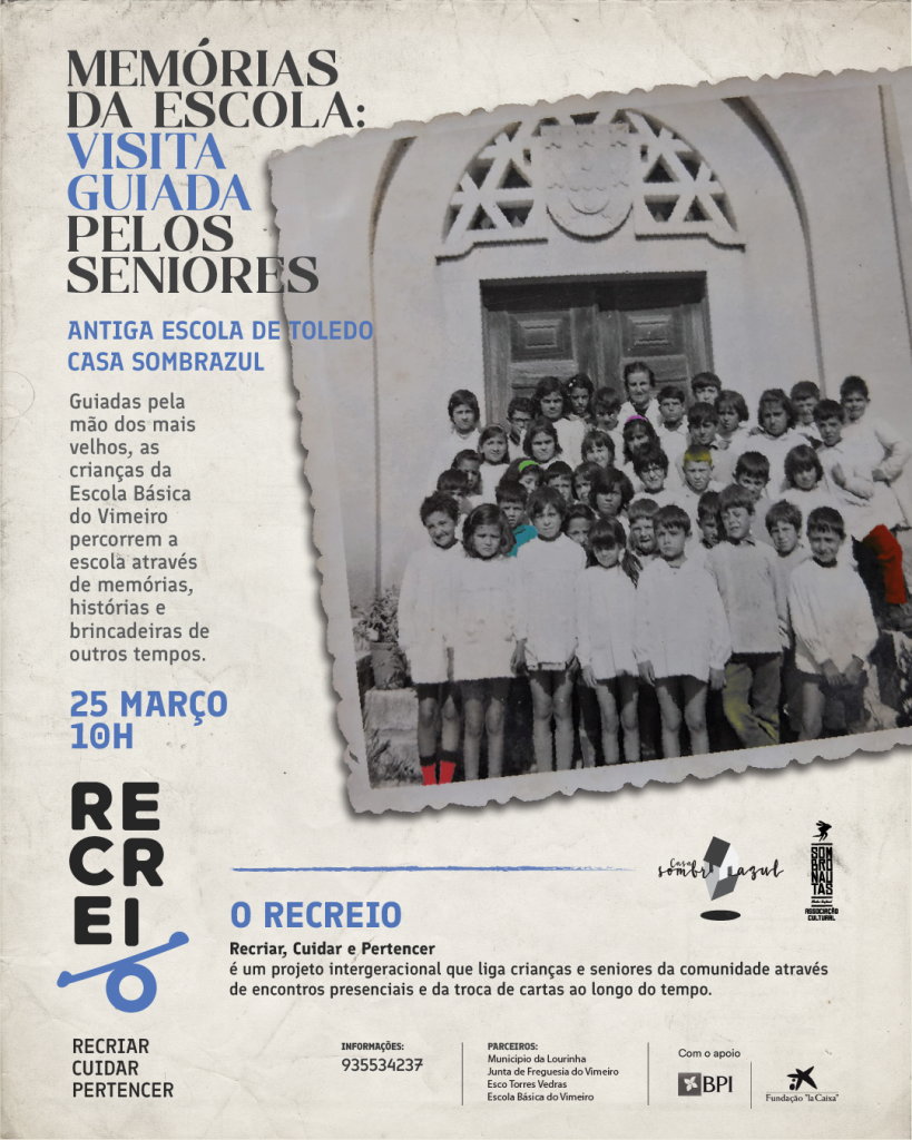 Guiadas pela mão dos mais velhos, as crianças da Escola Básica do Vimeiro percorrem a antiga escola de Toledo através de memórias, histórias e brincadeiras de outros tempos.